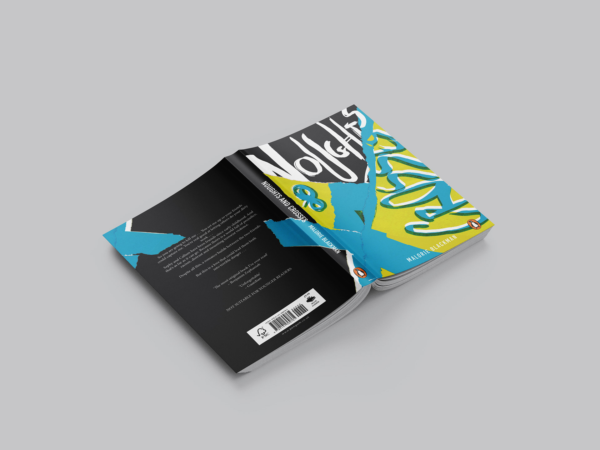In my redesign of the cover for Noughts and Crosses, I aimed to capture the intense emotions and stark contrasts central to the narrative. Utilising ripped paper elements, I created a layered effect that symbolizes the divide between the characters' two worlds.